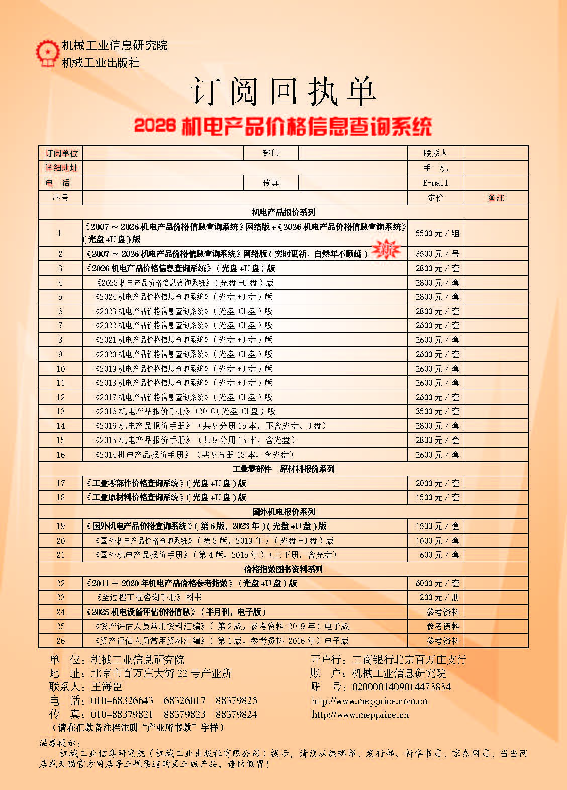官方正版《2025机电产品价格信息查询系统》订单
